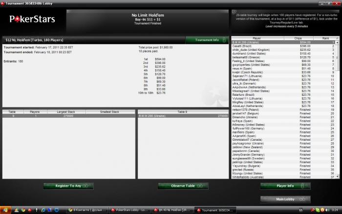Poker Stars $4.00+$0.40 No Limit Hold'em Tournament - t300/t600 Blinds + t70 - 9 players