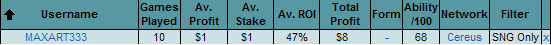 Просмотрел 5 румов(кроме Старзов и ФТП) для меня наилучшим стал Абсолют. Вот и играл сегодня на нём. Ник всё тот же. Maxart333. Отыграл всего 10 игр(много времени ушло на выбор рума). Кстати насчет румов PKR удивил, потому что игра идет настолько медленно, что выдержать это невозможно, непонятно кто вообще играет там???