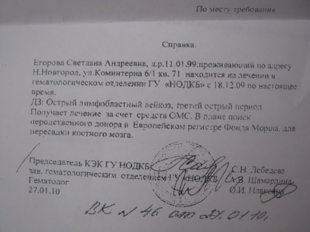 привет ребят.. Я знаю, меня тут ни кто не знает, и нет доверия..(зарегистрировался я несколько месяцев назад, просто я играю не высокие лимиты, и особо помочь с комментариями не могу, только учусь...) но всё же.. заверяю вас, это не лохотрон, и не фейк.. такими вещами шутить не льзя... в Нижнем Новгороде, В 70 школе в 5-м классе есть девочка, которой требуется срочная пересадка костного мозга, нужно 800 тыр, собирают по всем каналам, без соплей, потому что срочно, деньги нужны были ещё 28 числа...