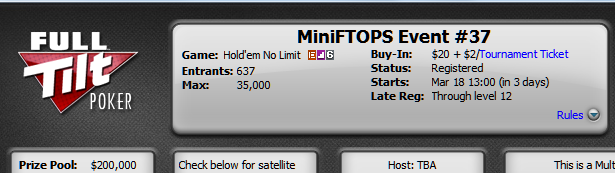 Full Tilt Poker No Limit Hold'em Tournament - t30.00/t60.00 Blinds - 3 players