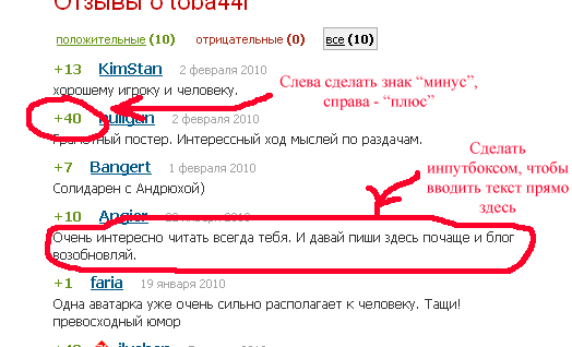 Ну и т.д. В общем любая спекуляция рейтингом будет исключена за счет лимита на кол-во сообщений перед тем как человек может кому-то ставить рейтинг, возможности у админов все-равно вырубать человеку право ставить рейтинг, исключения системы, когда рейтинги выставляются неодинаково, в зависимости от веса рейтинга того, кто ставит, что далеко не всегда объективно. +1, -1. 50 человек тебе +1 поставили - значит ты достоин высокого плюсового рейтинга. Минусов тебе много наставили - значит ты достоин иметь много минусов. А не так, что сейчас к примеру один "весомый" поставил кому-то +100 и пять менее "весомых" поставили по -10, а человек остался плюсовым. Это значительно менее объективно ИМХО.
