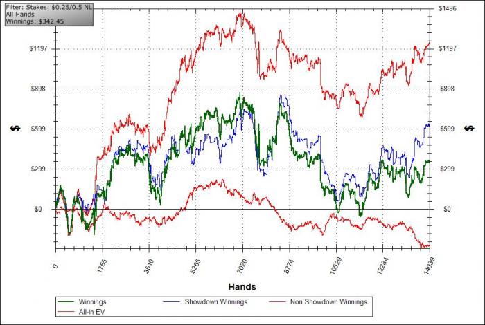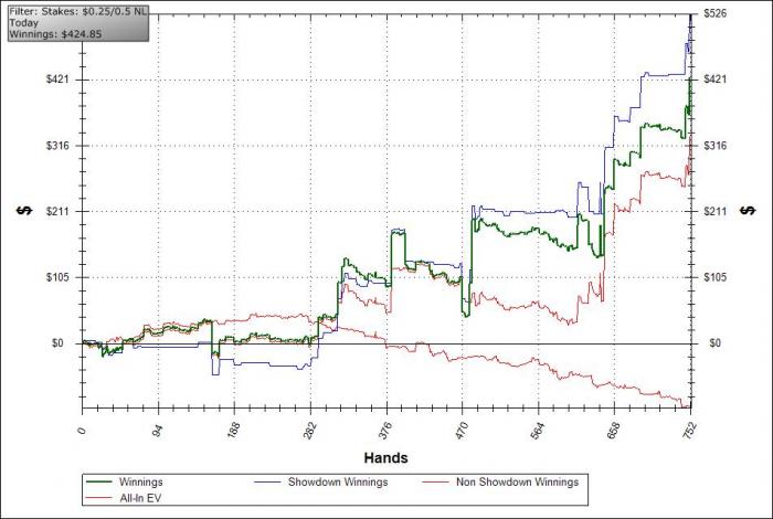А в целом с твоей стороны все было крепко, но я не уверен, что ты можешь сказать что-то определенное о моих постфлоп диапазонах. Тебе понравилось, что со мной можно просто ждать рук, но когда я понимаю, какие руки ты ждешь, и за 1-2 улицы на постфлопе по текстуре доски и твоим действиям могу часто присвоить тебе довольно узкий диапазон комбинаций - это повод задуматься.