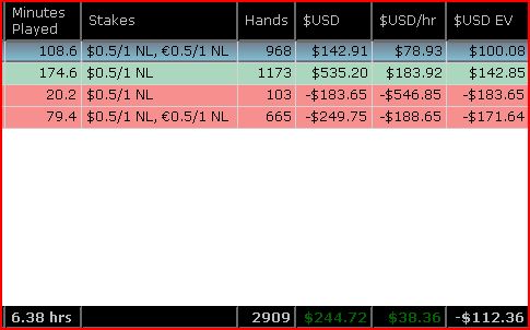 Холдем менеджер по-прежнему теряет раздачи и пишет всякую ахинею. Обновил старсы, надеюсь это поможет. Завтра и проверимс. Что по результатам, то по условиям моего минимарафона я должен был сделать +300 до воскресенья, сейчас, на вскидку, я иду +500 можно какбэ остановиться и в воскресенье таки отыграть как собирался...НО... подумав над тем чтобы отдохнуть, пришел к выводу, что глупо терять отличный день для катки (ведь на старсах Пятница>суббота>всё) ради жалкой мттшки тащииииииим