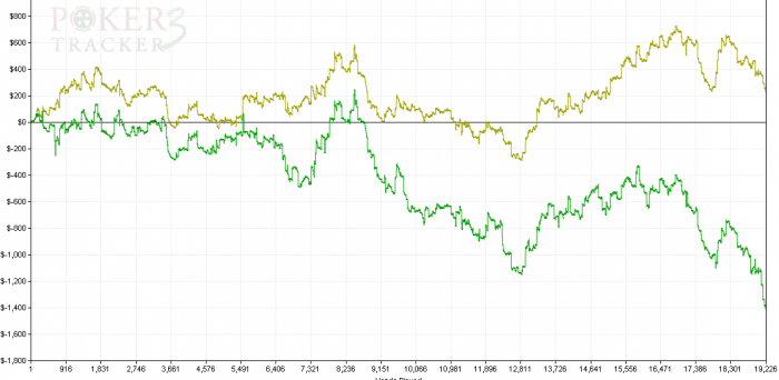 River: ($75.00, 2 players) SB bets $115.55 and is all-in,