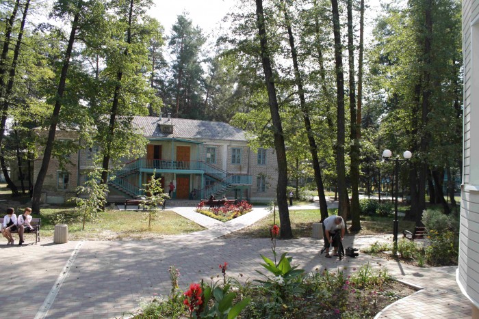 Мероприятие проходило под Донецком, в городе Святогорск. Местные считают его курортом, и, на самом деле, здесь довольно хорошо, только вот чтобы добраться до Святогорска приходится проезжать Краматорск - самый грязный город Украины. Дышать в нем абсолютно нечем и цвет неба очень далек от естественного. Вот в таком месте мы жили - зеленом, но совковом. Да, это оказался детский лагерь. Правда, что порадовало, наша группа жила в единственном корпусе с евроремонтом и хорошими условиями. А вот столовая была одна на всех(((