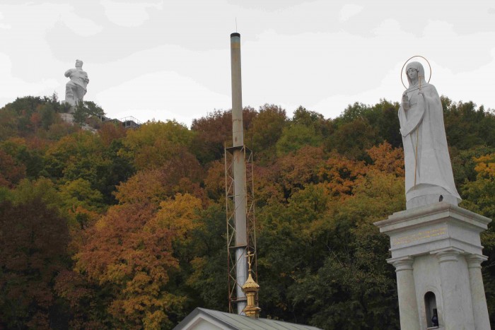 Очень по-донецке. В одной фотографии религия, огромный памятник Артему (местный партработник) и непонятного происхождения труба.