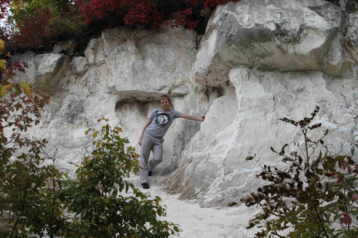 По дороге наверх, то ли в лавру, то ли к Артему (развилка находится наверху) находятся довольно живописные меловые образования)