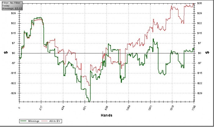 .. но итогом не доволен, надо было на весь стек сыграть на ривере, ибо боимся только 33, вот если бы эта скотина поставила 3/4 или пот, но нет, влепил обербетом, смутил меня зараза, к тому же я еще и поспешил, лол