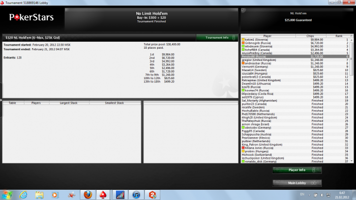 Kaktus26rusЗдароува!)Бр достаточный, чтобы играть высокие лимиты мтт на старзах)Да сатты по 82 евро входят в мою ежедневную сессию, а дальше играю сатт за 530 в воскресенье, составы обычно очень фишовые и частенько удается пройти отбор, но сейчас не играю воскресные потому что запланированы вне покерные поездки на ближайшее время, а потом Монако..)Уже жду, не дождусь)