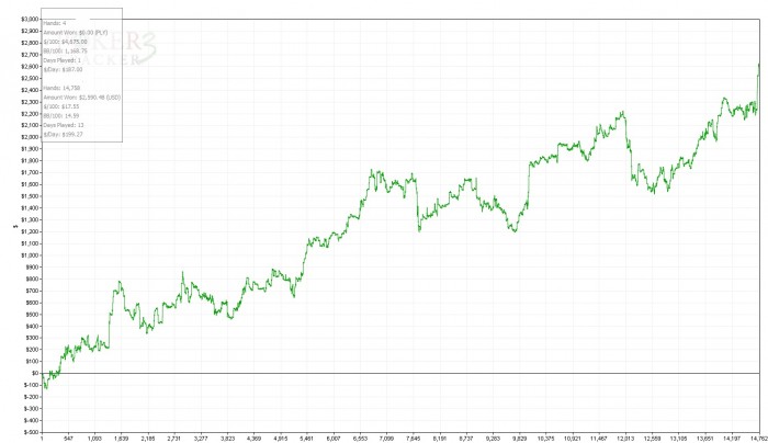 Месяц получился обрезанным, я играл 11 последних дней, но, на мой взгляд, крайне продуктивно. Сыграно 14700 сдач, что для меня достаточно много. Большинство дней я тупо катал, выбираясь из дома за едой и чуть проветрить мозги. Ещё парочку таких месяцев и можно переходить на бизнес-проекты, совмещая их с каткой! =)