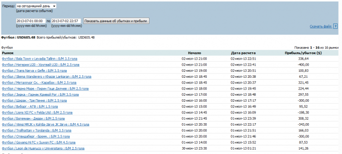 2. Банкрол менеджмент. По банкролу я играл редко и не разделял личные деньги от игровых, воответственно случаев когда в пари стояло 100% денег на счету были не единичными. Т.е. в принципе это не смертельно, т.к. это всё таки биржа а не контора, т.е. можно выйти из рынка зафиксировав убытки при неблагоприятном течении хода матча. Но у меня это получалось редко. В общем всё таки банкрол менеджмент нужен и я всё таки буду его соблюдать, хоть он и агрессивен очень, но всё же поможет избежать ошибок прошлого и более 20% от банкрола я ставить не буду.