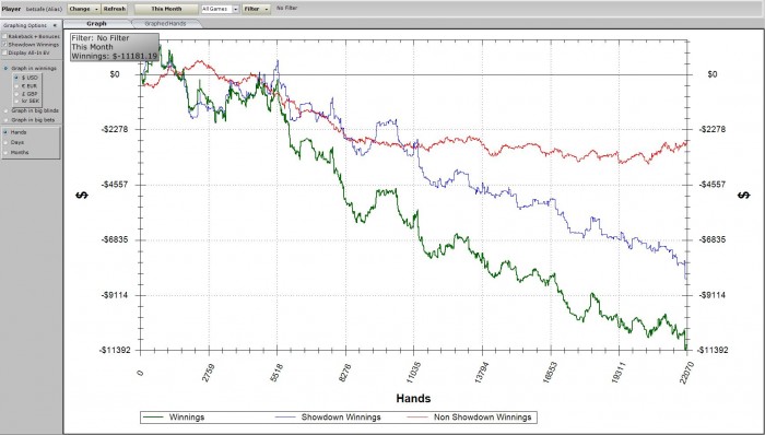 калькулятором в руках, я посчитал что за последние пару лет, он проиграл более 14 милионов долларов и