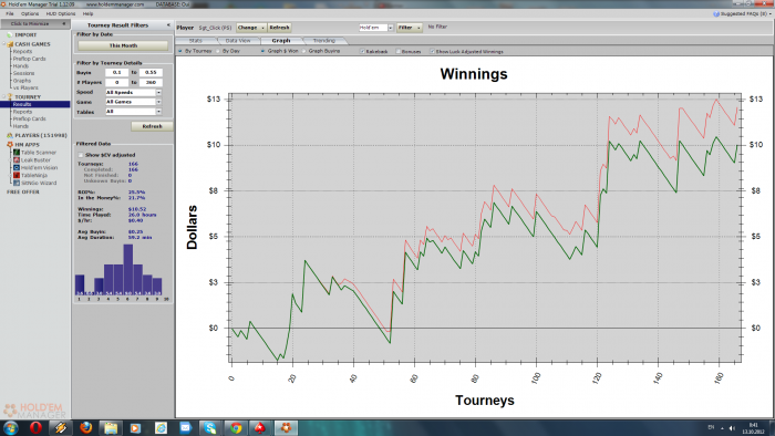 Завтра выходной посмотрим что получиться...Собираюсь сыграть не меньше 100 турниров, если конечно хватит терпения, и начать подключать 0.50 турбо 45 макс