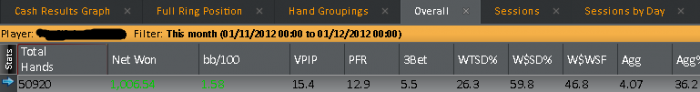 у меня статы кстати аналогичные, вплоть до десятых, пошире 3беты правда и агрессии побольше(но я собственно не на старзах играю), но довольно-таки странно почему при таких показателях, такой низкий вр? сколько ев?какой $\час на сотке чистый?