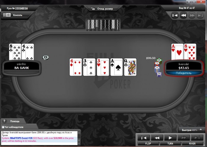 А так да. Будущая моя цель это деп в 500$ и играть не ниже по 11$ турики и одновременно по 3-4 стола.