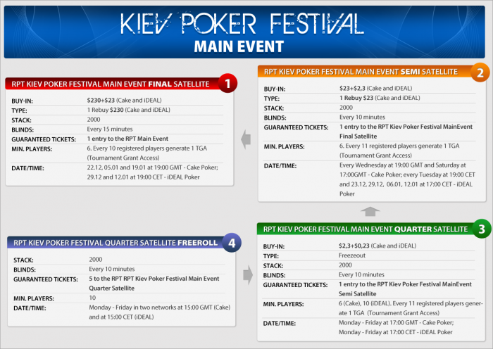Кроме того, в 21:00МСК состоится отборочный турнир RPT Kiev Poker Festival Main Event Semi Satellite на финальный сателлит по $23+$2,3!