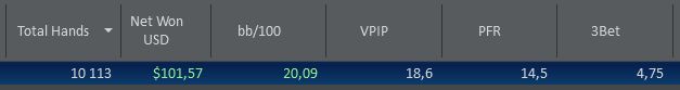 Не знаю о чём я тогда думал. Статы вроде бы уже были на фиша 390 рук, 72% донк/колл. Выкинул на ветер больше половины стека