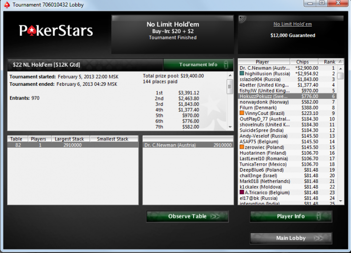 Давно не писал! Вроде бы и играл, но писать настроения не было особо =) Много играл в кеш, потому как это идеально сейчас в плане графика и усталости после зала. Очень сильно устаю и не могу потом откатать полноценно сессию в мтт - в концовках сил не хватает. Ну и по чуть-чуть бекаю =) В кеш вроде бы не забыл как играть, поле бьётся нл50 10-15бб на 100. Естественно жесточайший селект столов и 6 столов максимум. Зал продвигается, с учётом питания набрал 3 кг веса =) Сегодня сел покатать сессию в мтт и сначала вроде не особо складывалось всё, но вот в концовке порадовали =)