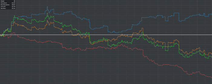 Опять же посчитай комбы которые объем/ которые бьют нас и ответ будет очевидным. Блефы от такого оппа я не жду.