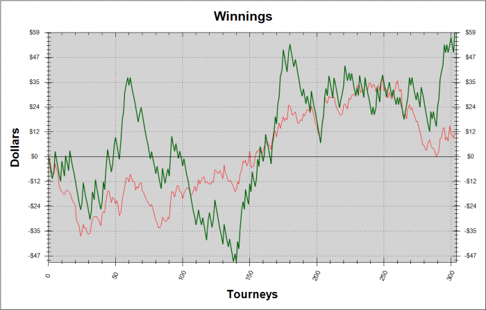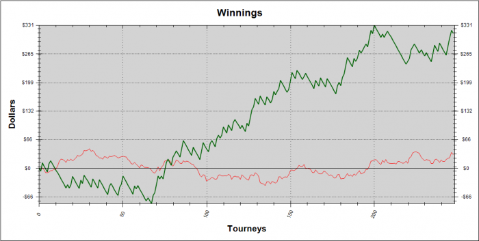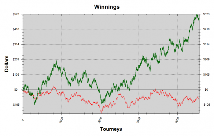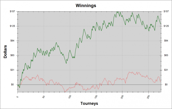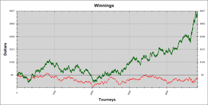 И график с 25к турнирами, это я так понимаю для подъеба того же Doppler_EFF, мол чего ты несешь я крутой покер про итдл.. Более корректно было бы тогда выкладывать этот график не в $ а в БИ если уже ты без фильтров по БИ его сделал. В прочем, 25к да +- дистанция, но хз, моя практика показывает если ев тащится у 0, то рано или поздно все равно выебут по полной.