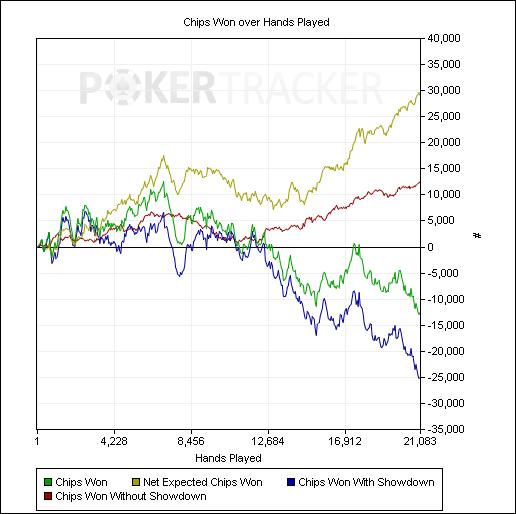 Да меня они не смущают. Меня просто переезжают-переезжают-переезжают и каждые турниров 5 я смотрю, в плюс ли идёт ев (не начал ли тильтовать) и nonSDw (не устал ли / не стал ли фит-о-фолдить "неважные" банки). Если в ноль/минус - прекращаю сессию, вверх - продолжаю.