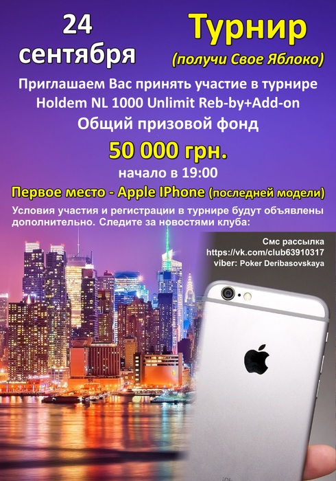Наконец то настал момент турнирного покера в Одессе. Для всех любителей покера хотим сообщить что скоро в Одессе начнут проводиться турниры. Помимо традиционного кэша одесситов и гостей города ждут 10 турнирных столов, Бар с разнообразным меню и теплая атмосфера покера!