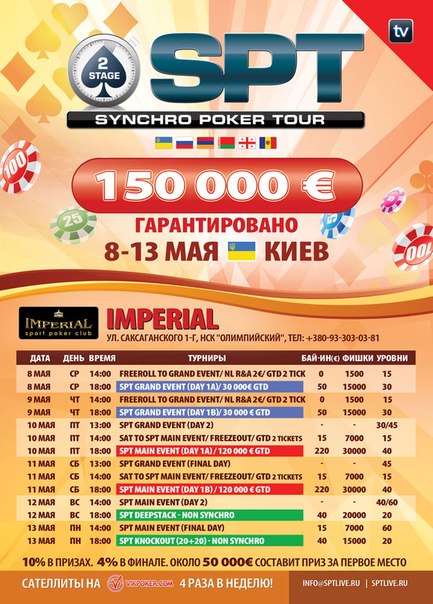 Стартовый стек 10.000 , уровни по 20 минут. RE-ENTRY можно использовать 6 уровней.