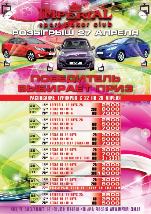 Приглашаем всех Вас на розыгрыш одного из 3-х автомобилей, который будет проходить 27 апреля 2013 года в клубе «ИМПЕРИАЛ»