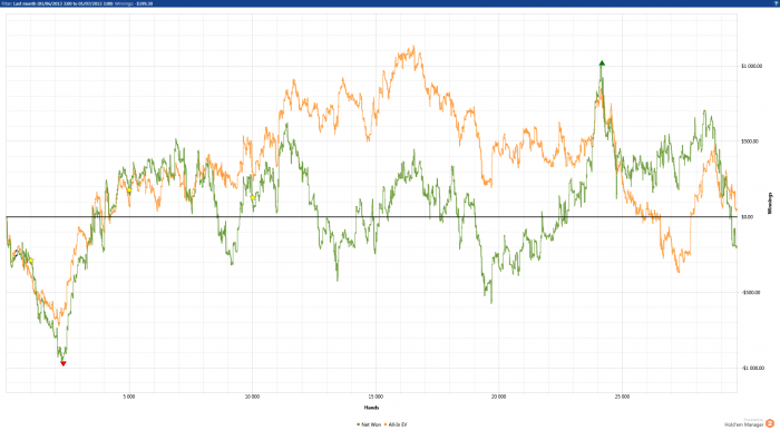 Саым главным достижением можно считать избавление от психологического барьера: еще начиная с холдема при переходе на новый лимит мне было необходимо, чтобы прошлый был сыгран хотя бы в микроплюс, всегда было больно видеть красненькие цифры в ХМ.