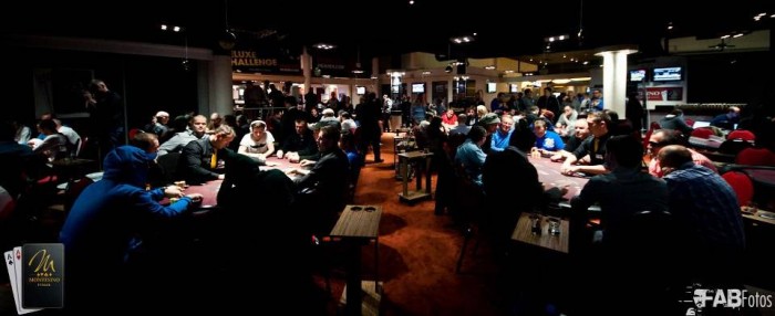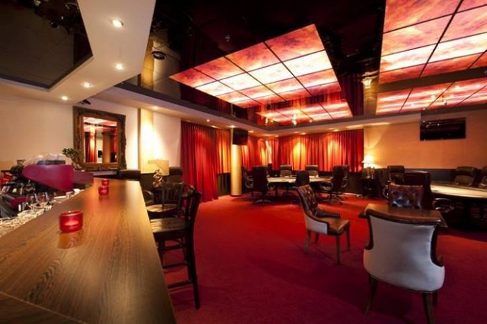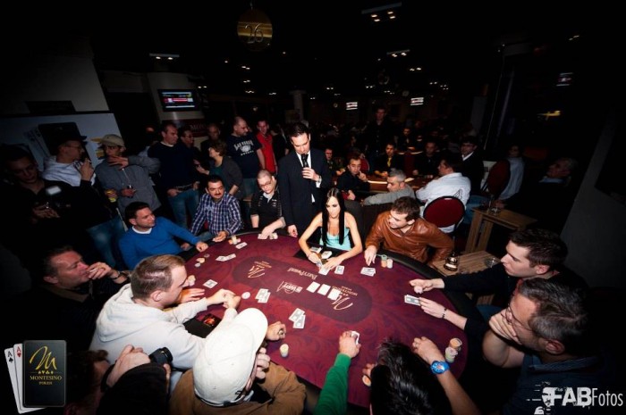 Вчера, сижу дома. Часов в 19 00 приходит смс с предложением поехать поиграть офф. от Артура, так как ему было скучно и хотелось поиграть фор-фан. Не долго думая я соглашаюсь, хоть и собирался ближайшую неделю или даже две поработать со ставками и пока не ездить на покер. Потом только вспоминаю, что из наличных у меня совсем мало денег и нужно снять денег с карты. Но тут совсем другая проблема, так как снимать в обычных банкоматах разрешается максимум 400 евро, только в специальных банках можно снимать 3000 в день. Встретились мы уже возле покер клуба. Пошли искать банкомат, нашли. Но он вообще отказался выдавать мне даже 400 евро, а выдал 300. С таким банкролом я и отправился играть. С мыслями ну на 1\2 хватит, все таки фор-фан идем. Вот такие оффлайн регуляры бывают, без наличных денег . Придя в казино мы сразу сели за новый сформулированный стол 1/2. Поменяли по 200. Поиграв раздач 8-12, нам предложили сделать стол 5-2. Таким образом кто хочет играть 1-2 пересели за другие столы, а кто хочет играть чуть выше пересели к нам за стол. Все начали менять по 500-1000 за стол. У меня в кармане 300, поменял на все. Артур предлагал добавить, но я чисто из принципа отказался, так как считаю не правильным брать в долг у человека с которым только познакомился. Так, что моя задача максимум была удвоится, а затем начать играть. Изначально начали играть 7 человек, но он быстро заполнился желающими менять 1000+ евро. Стол был очень хорошим и комфортным. Игроки были самые разные, был дедушка лет 70-80, поменявший 1000. Был австриец лет 50 в характерной национальной одежде, был мужик такого же возраста одетый более современно, был китаец с которым я уже не однократно играл до этого. Все они поменяли по 1000+ и готовые к Гемблингу. Спустя несколько часов игры наш стол превратился в 7-2. Немного не обычно, не так ли?:) Суть стола была в том, что если ты выигрываешь раздачу на карте без шоудауна ( на блефе или просто забираешь канбетом с совпадением) то каждый игрок дает тебе по 10 евро, а если на шоудауне то по 20 евро. В игре часто ставился страдл. По этому столик получился довольно раскаченным. Играли мы недолго так как изначально собирались побыть до 12 или 01 ночи. Встали оба в плюсе. Думаю фор фан удался. Правда могу сказать , что своей игрой не доволен то ли перерыв так сказался, то ли очень уставший был после тренировочного дня ( ходил в новый зал качалку и бассейн), то ли игра коротким стеком отупила. Но много не добирал и делал не очень оптимальные мувы. Что собираюсь пересмотреть в дальнейшем. Для понимания вида покер клуба, это фотографии одного из турниров проходящих там: