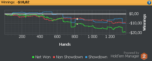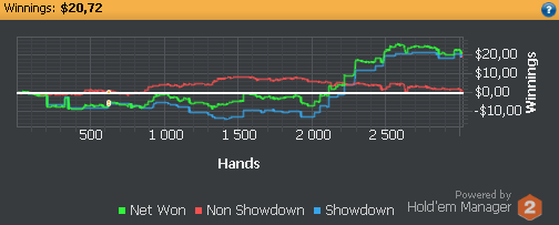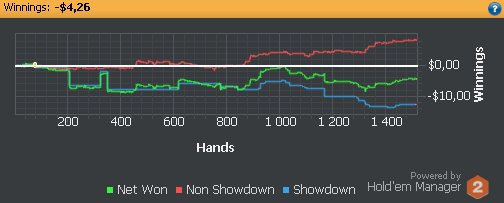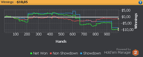 Такое чувство,что из за постоянных мыслях о том "Куда попал диапазон оппонента?" я веду на шоудан все гавно . Лузовые колы,маленький фолд на 3 бет .