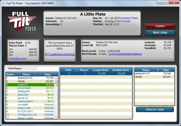 Full Tilt No-Limit Omaha Tournament, 800/1,600 Blinds (6 игроков) - Full Tilt Converter Tool from http://ru.flopturnriver.com