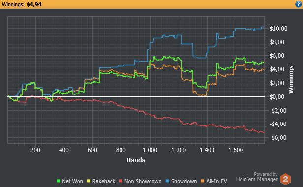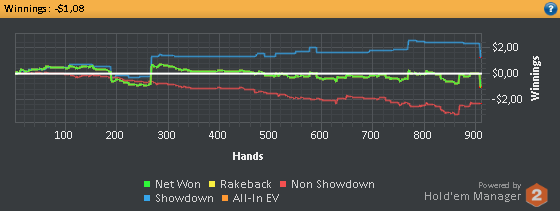 Как то играть сегодня впадлу, отыграл чуток и хз буду сегодня еще или нет. Но и за эту короткую дистанцию как обычно переехали моих тузов :) Днём сыграл турнир за 1.10$ ,2225 players , 217 место - 2.11 $