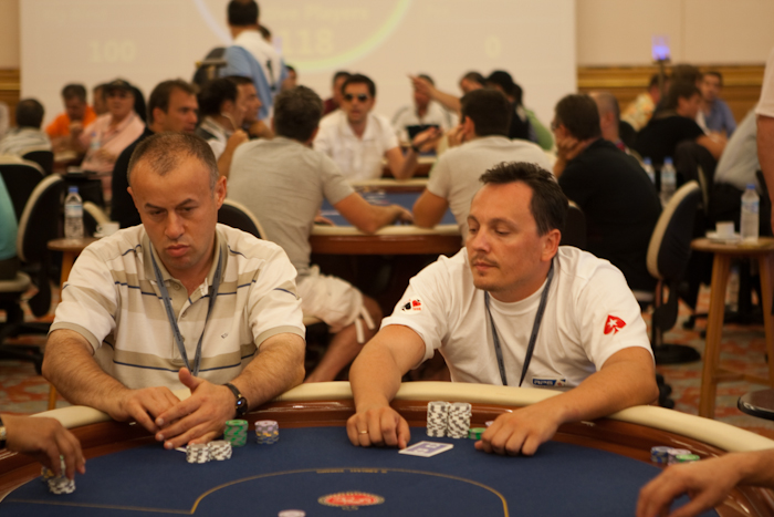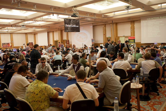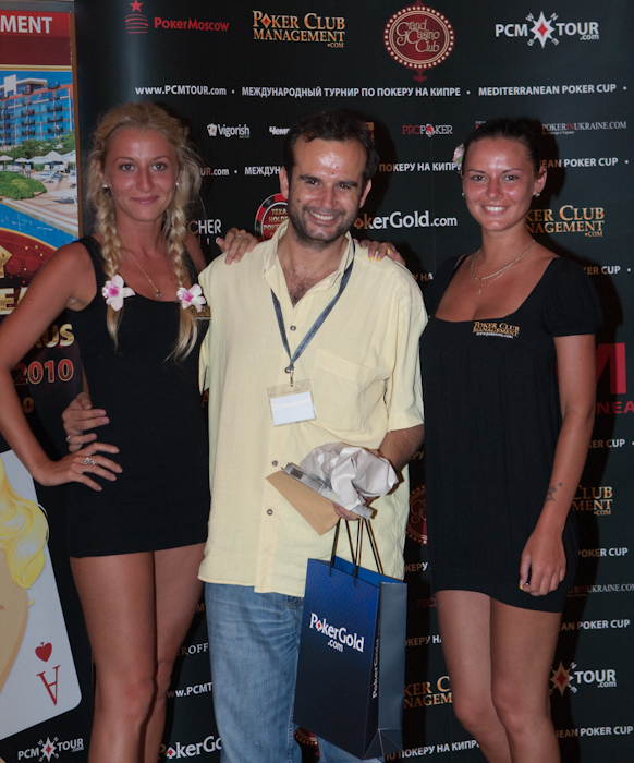В главном турнире серии Mediterranean Poker Cup с бай-ином $2000+200 приняли участие 125 игроков. Как мы знаем, победитель RPT Александр "AlX" Шаров и Антон "Mckiev" Макиевский, вылетели на ранней стадии, а в призовую зону (12 место, $3360) попал Игорь "Garrik" Ярошевский из Днепропетровска. Чиплидером на финальном столе турнира, является Лера Литманович, где ей противостоят представители России, Турции, Германии, Ливана и даже человек из Колумбии, который решил не раскрывать свое реальное имя и зарегистрировался под именем Пабло Эскобар.