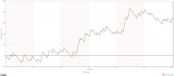 Hi all again ! ! !Продолжаю катать 3.5$ турбы на 18, паралельно с ними переодически подлудоманиваю турики от 6-20$, частенько получается попадать в ITM, но не более того, о заносе пока речи не идет Что имеем на текущий момент: БР = 150$