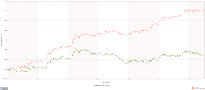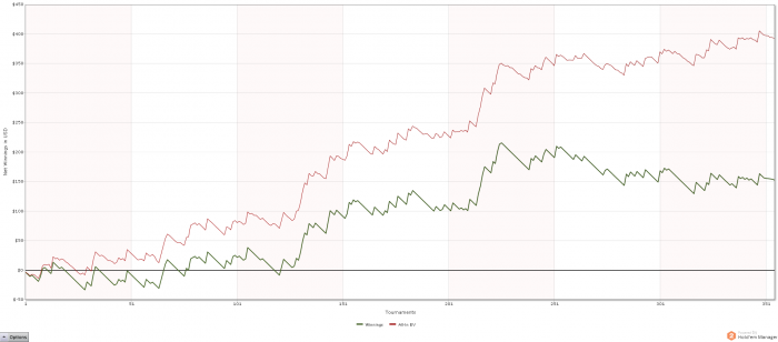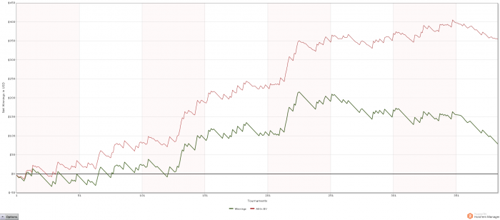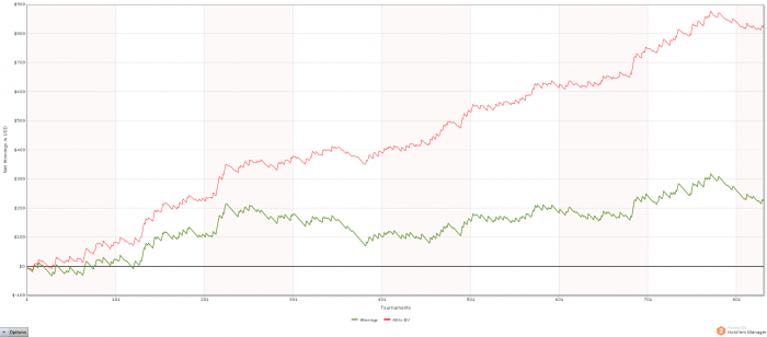 Недодача конечно немаленькая, может потому что не люблю выставляться по Визарду с херовым эквити, может для турбин это нормально, т.к часто играешь против фишей ,которые любят всякий хлам запихать и с ним же заколить при этом доехав, слышал что в турнирах и снг EV считается неправильно, тоже как вариант.