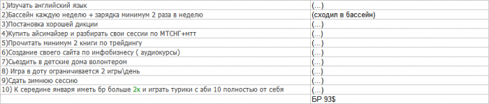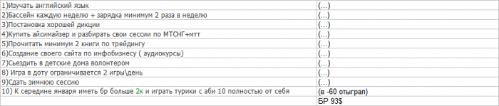10) К середине января иметь бр больше 2к и играть турики с аби 10 полностью от себя (сеня анализ)