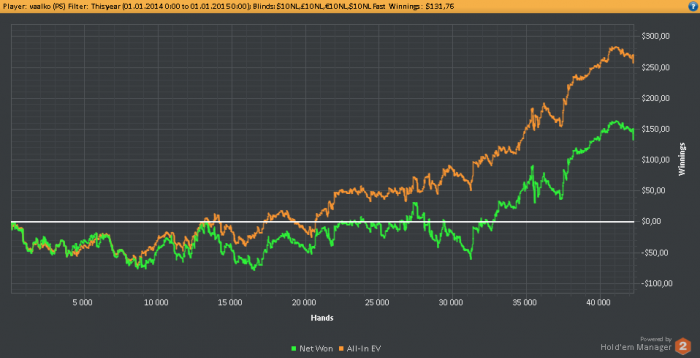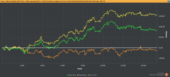 koosooi @ 6.12.2013 играю нл 20, но перешел на айпокер пол-месяца назад,поэтому сказать больше сложно...мало играл...но за отыгранные 35к, иду 5 бб\100 + 5бб\100(РБ)
