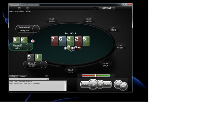 Такого отвратительного дня давно небыло, проигрывал всё A8<K8, 33<A3, AK<KQ, AA<88<44<99<10 5off, ну и так дальше. Проиграл все коины, как с низу, так и с верху.