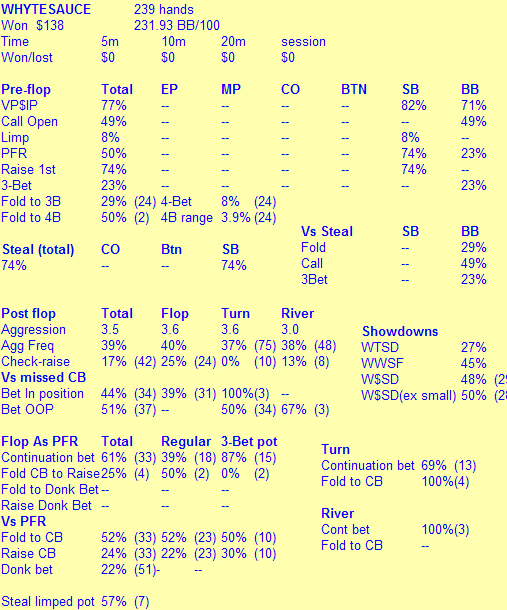 Замазался с ним где то на 400 раздач. Буквально в самом начале проиграл ему 8 би за 20 мин.