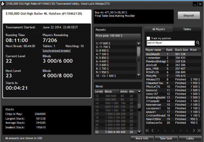 В последнее время начал поигрывать МТТ(по 1-3 паралельно с кешем), и для настроения помогает(люблю представлять как это круто выиграть 10к за день), и помагает наиграть больше часов в кеш когда в МТТ долго играешь. Вот вчера мой рекордный занос, И не гнобите меня сильно, я за жизнь сыграл 200 МТТ включая фрироллы.