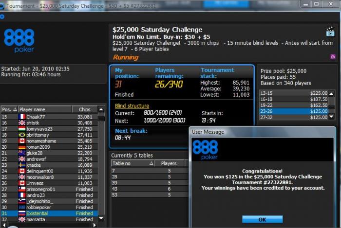 А уже все: аут 31-м, отмыл $55 с наваром в $70, а если учитывать сателлитовый бай-ин в $5, то вообще неплохой банкрол для моих двоек и троек у меня теперь.