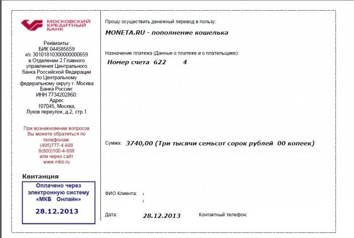 Проверь выписку Монеты за период с 25/12/13 по 15/01/14