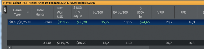 SB: $26.80 - VPIP: 22, PFR: 19, 3B: 10, AF: 4,5, Hands: дохуя