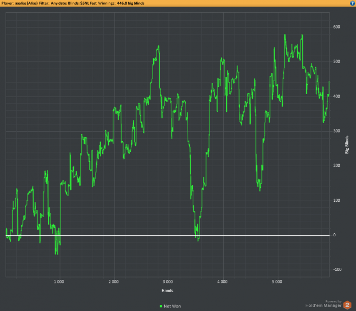 ну и по игре. начинаю новый формат для себя - играть вдумчиво 2 стола Зума / 6 столов регулярных. так, конечно, привычное кол-во рук в час падает в разы, но пока, последние несколько дней, такой формат мне нравиться - игра внимательная, интересная. но очень важно настроится на новый ритм и не делать глупостей от скуки. пока что получается, голова занята обдумыванием каждого спота. но боюсь через несколько дней придет волна автоматизма и начну делать глупости. именно поэтому, а также для того чтобы, в связи с падением рук/час, мотивировать себя на ежедневную продолжительную катку минимум 6, а желательно 8 часов - начинаю марафончик с ежедневными отчетами