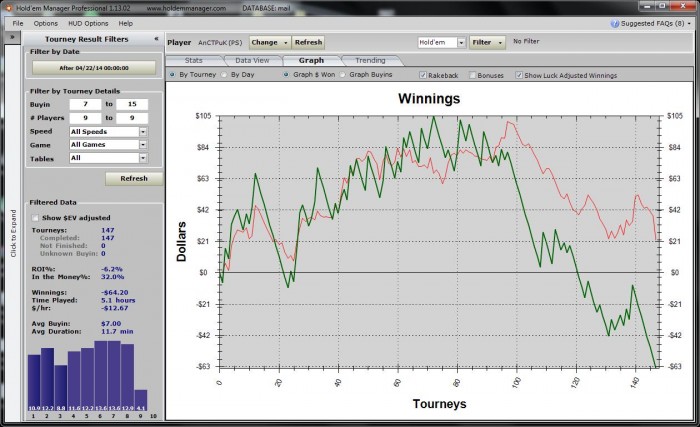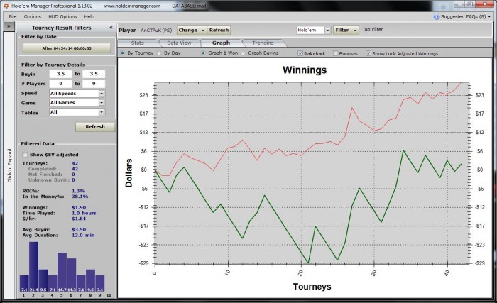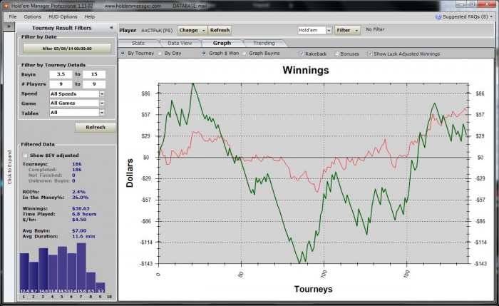 Еще позавчера пробовал играть стопкой на 3,5 лимите 12-15 столов. Я понимаю, 42 снгшки в час вместо 25. Но это полный отстой. Такое чувство что и качество игры = /2 Все пребаблы и баблы перемешиваются.Не видишь на чем тебя закрывают реги. Куча столов мелькает один за другим. А об адекватном ха можно вообще забыть. Оставлю я это занятие для boku87. Он могет, я - нет.
