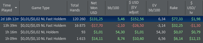 BB: $2.00 - VPIP: 15, PFR: 11, 3B: 1, AF: 1,4, Hands: 719