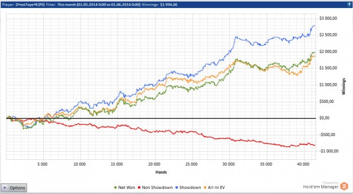 Месяц идёт хорошо, работаю много над теорией. Единственное, что плохо - это дистанция, отстаю в этом месяце на пару тысяч рук, к концу месяца нужно обязательно набить мин. 90к рук. Возможно в сл месяце сделаю третью попытку закрепиться на нл100
