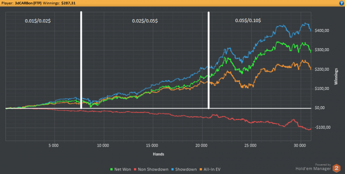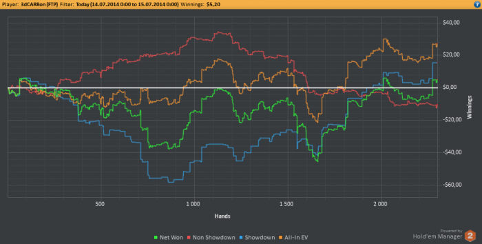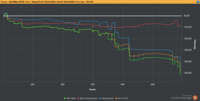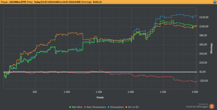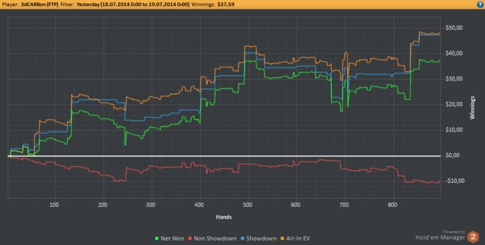 Всем привет! Сегодня не получилось отыграть 3к рук, хотя еще есть 2 часа и я бы успел, но сейчас в башкирии и время на 2 часа больше, что значит через минуту у меня день рождение, утро было ужасное -3.5би, остальное время отбивался. Устал, сейчас открою вискарик и начну потихоньку праздновать, а весь экшн завтра.