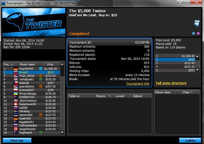 RoyaJl bets $7,950, BlueTheNuts calls $7,950